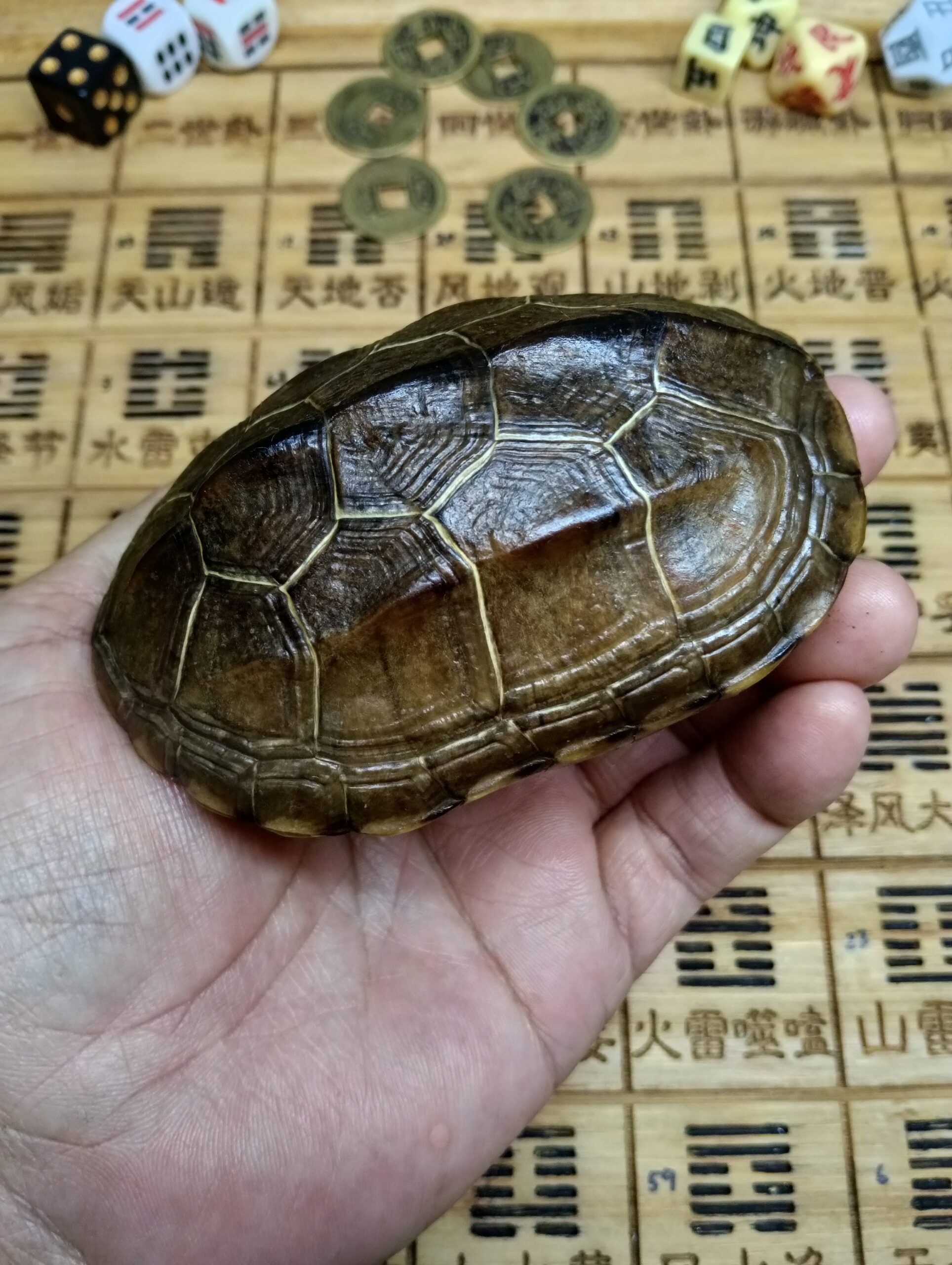 CN1011/13cm 六爻全品老龟甲+铜钱+龟甲保养油+收纳袋+易经64卦解卦书
