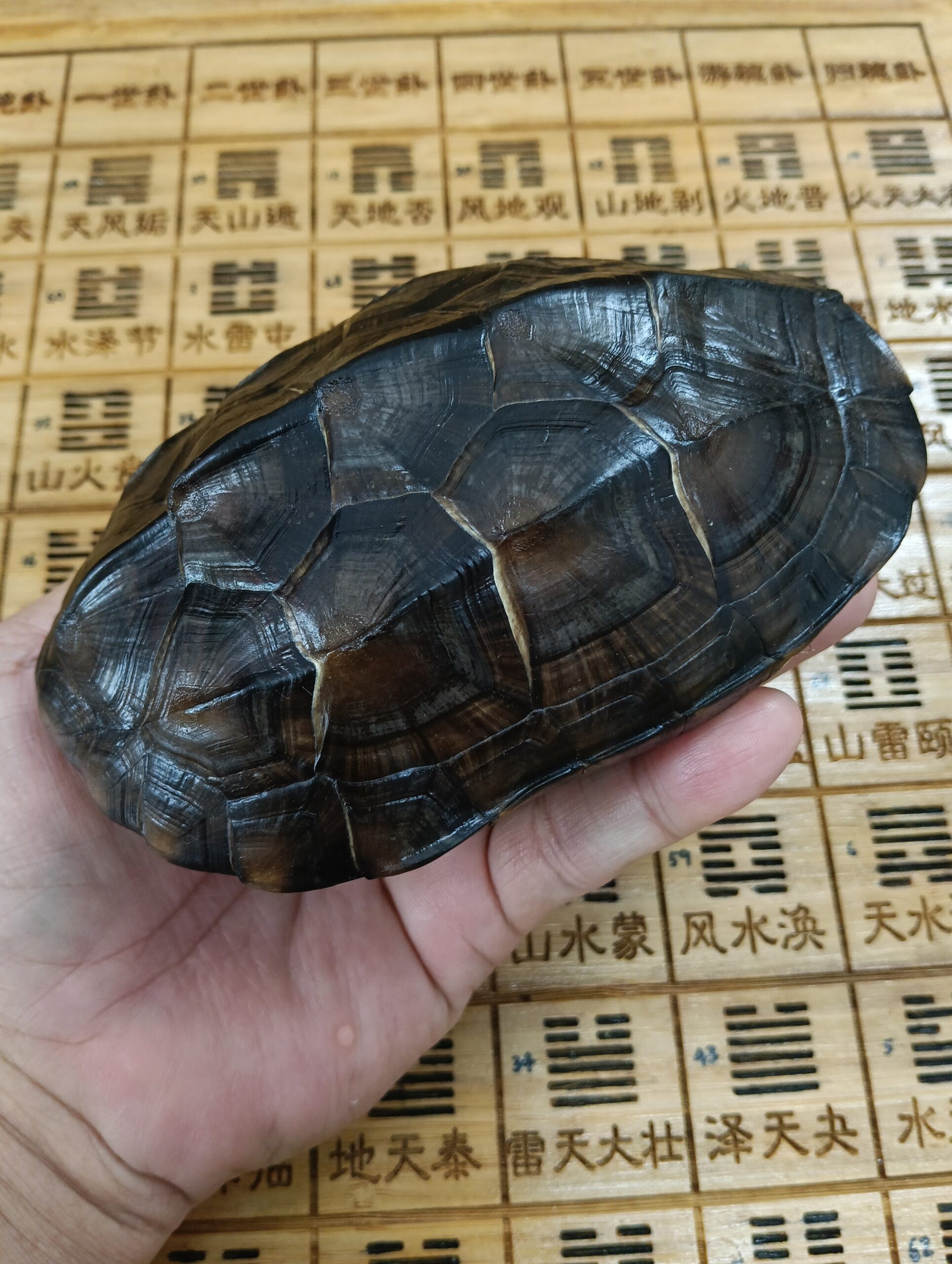 AN5022/16 cm Anhui Yellow- margined Box Turtle Shell 安徽黄缘闭壳龟甲+2.3CM铜钱+龟甲保养油+收纳袋+易经64卦解卦书+易经经典
