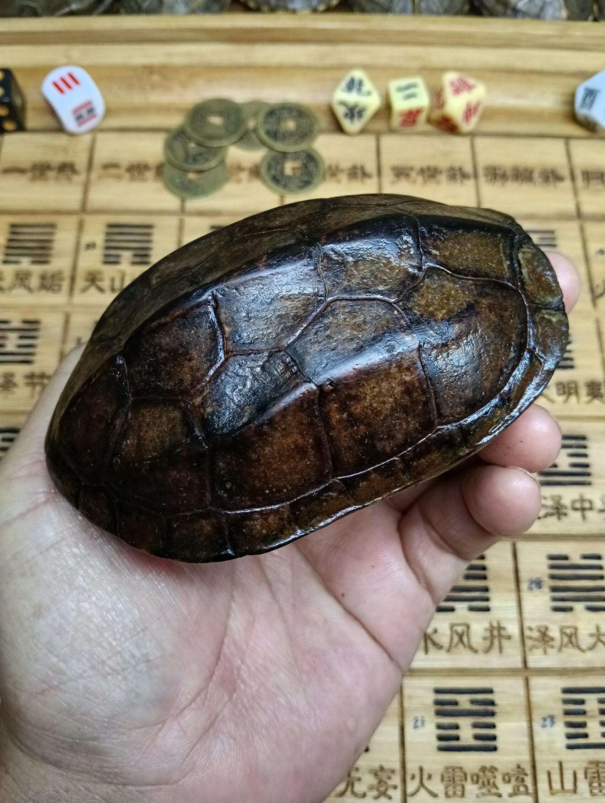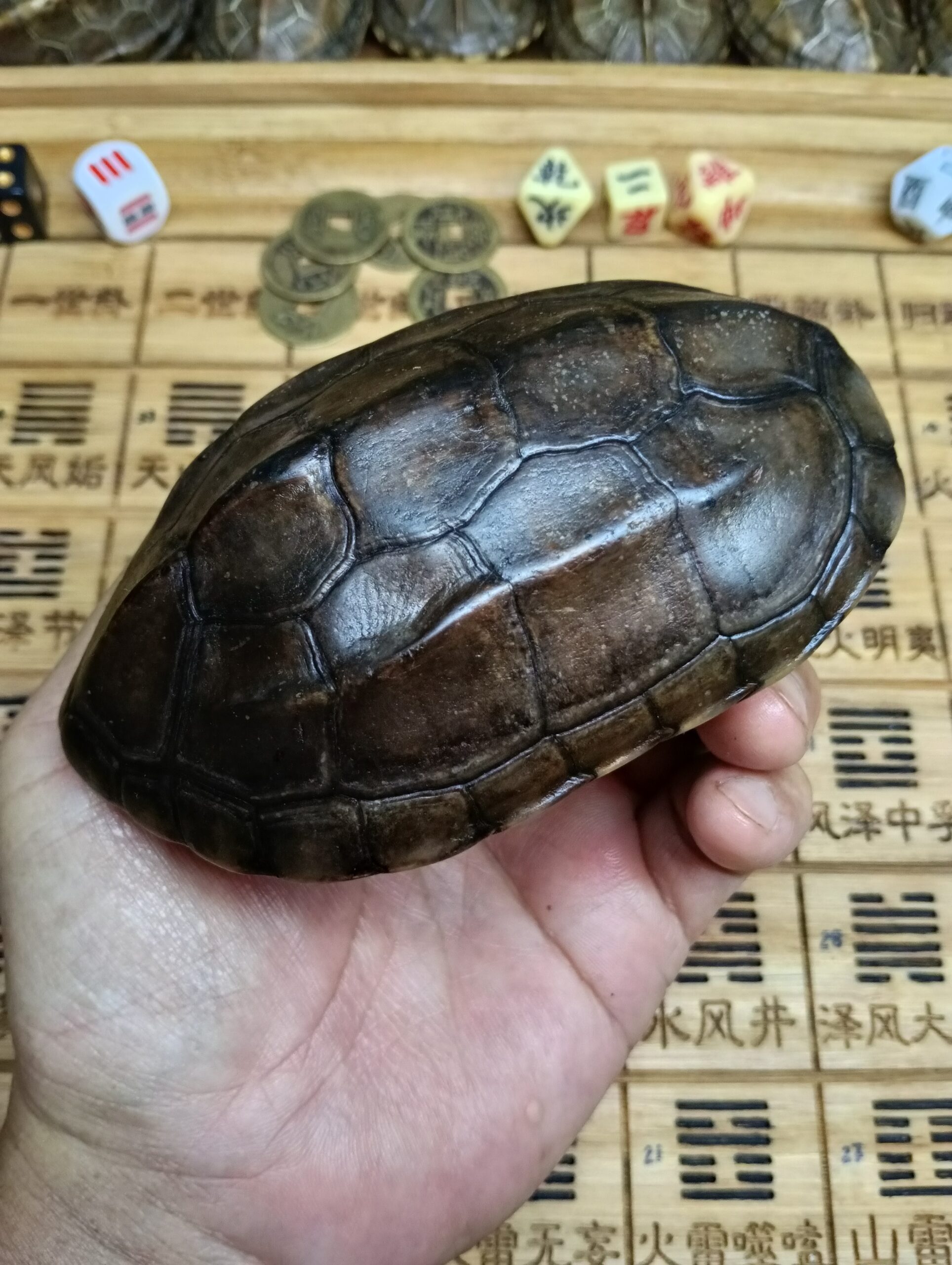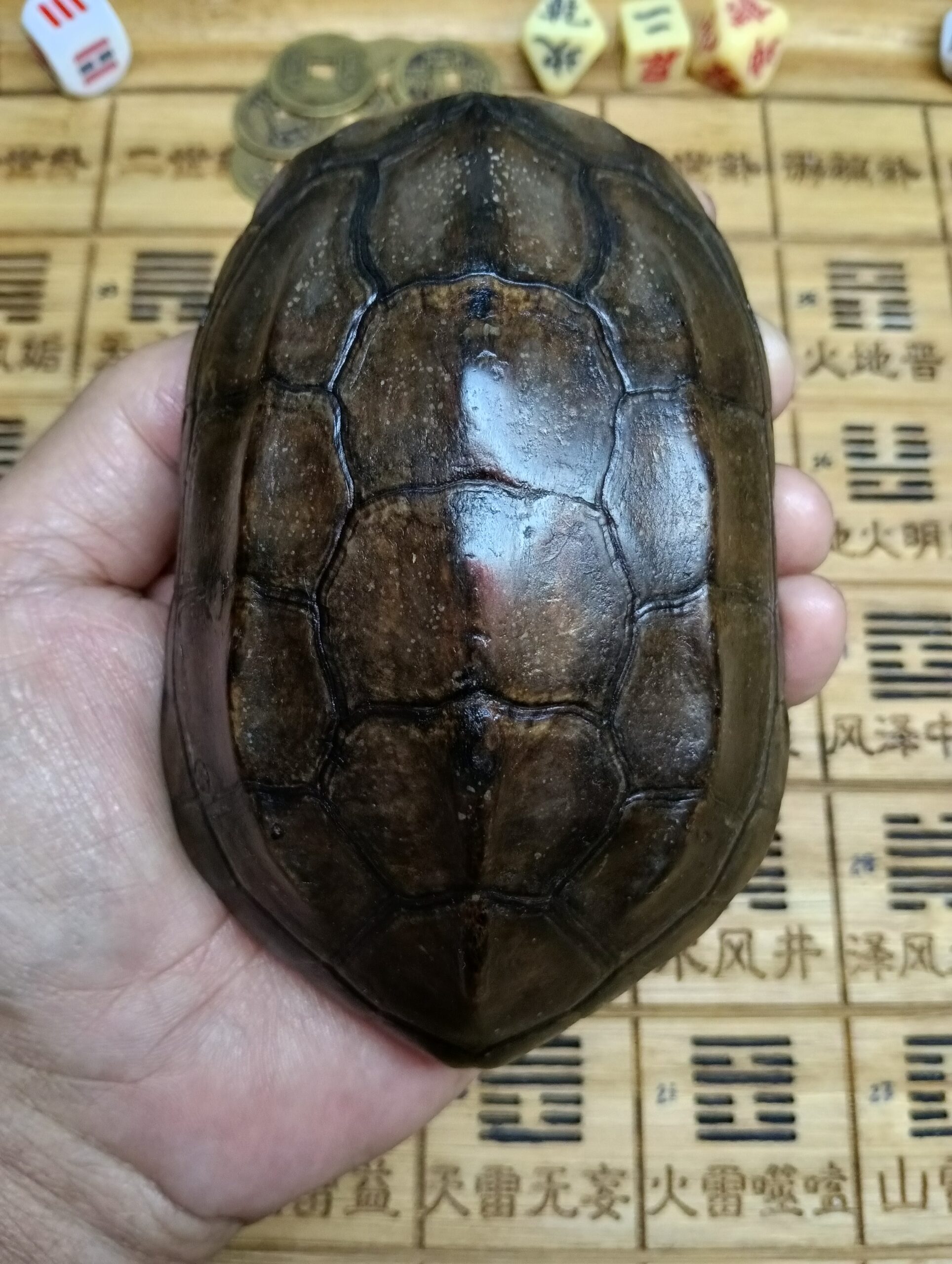 FN3013/11.2cm 墨龟甲 + 易经解卦册+ 铜钱+ 珍藏布袋+珍藏盒+保养油