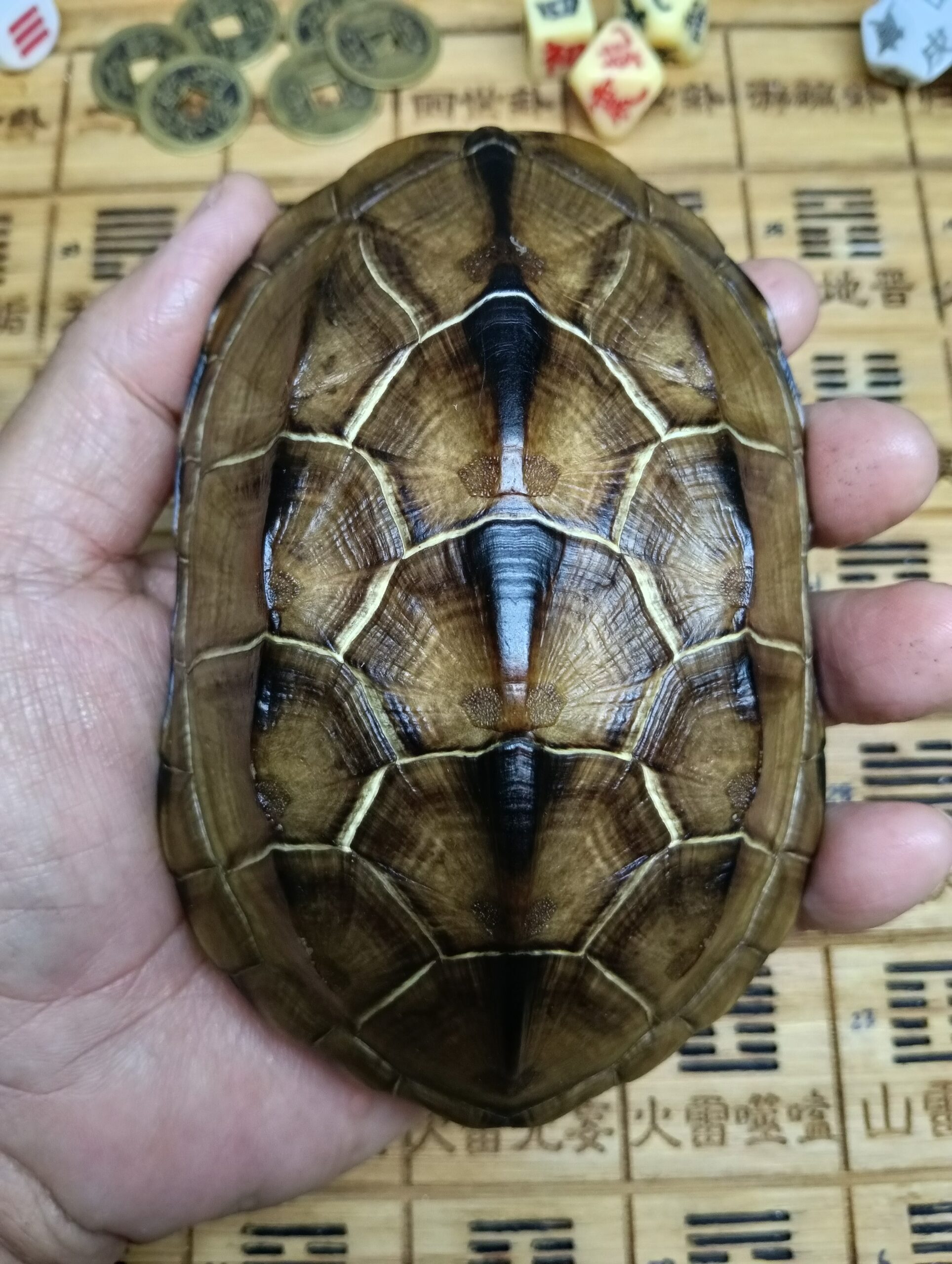 DN4005/11.7cm 金线龙鳞龟甲 + 易经解卦册+ 铜钱+ 珍藏布袋+珍藏盒+保养油