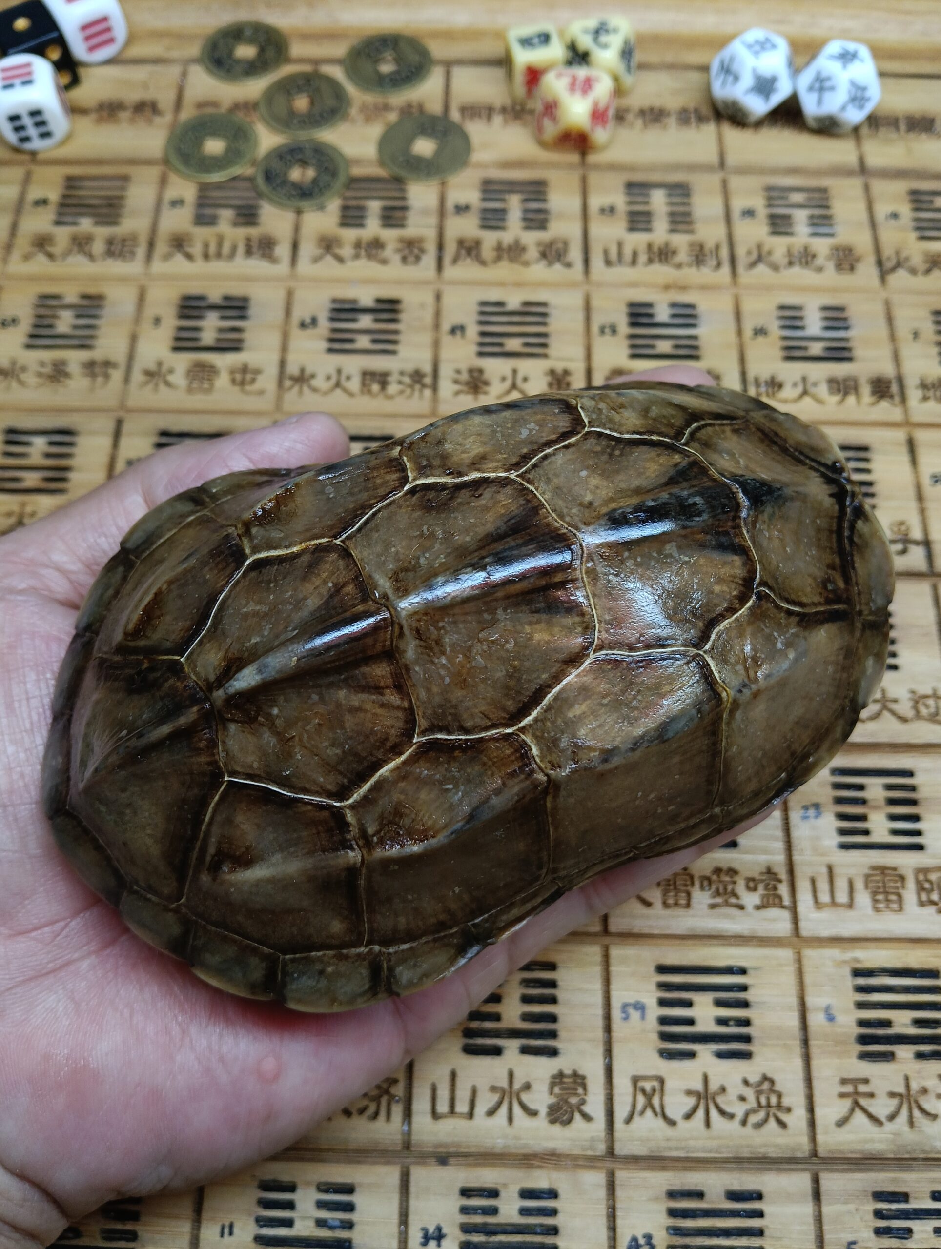 • WN1027/9.5cm 全品老龟甲+铜钱+龟甲保养油+收纳袋+易经64卦解卦书 RM138.00