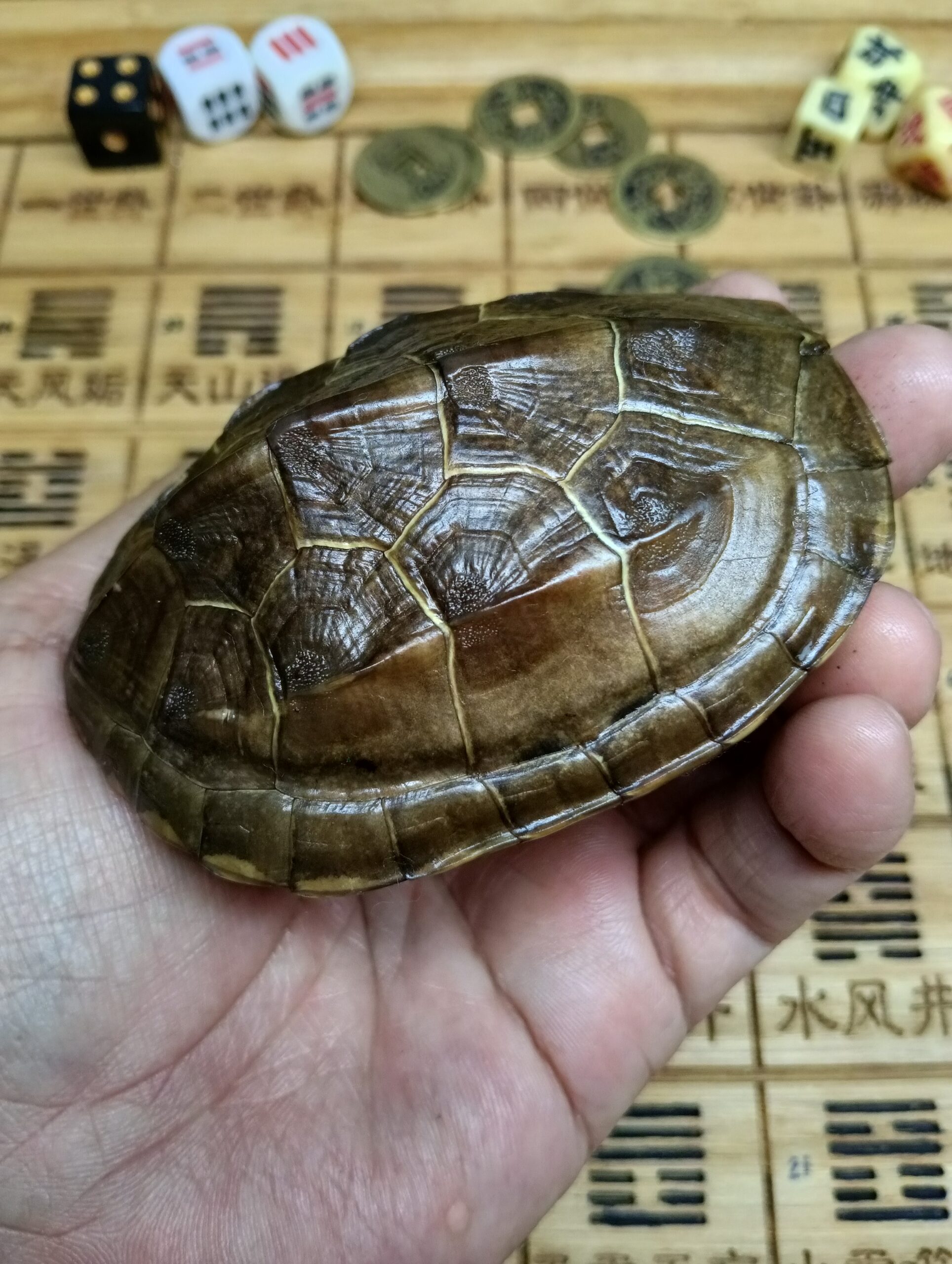• AN5022/16 cm Anhui Yellow- margined Box Turtle Shell 安徽黄缘闭壳龟甲+2.3CM铜钱+龟甲保养油+收纳袋+易经64卦解卦书+易经经典 RM388.00
